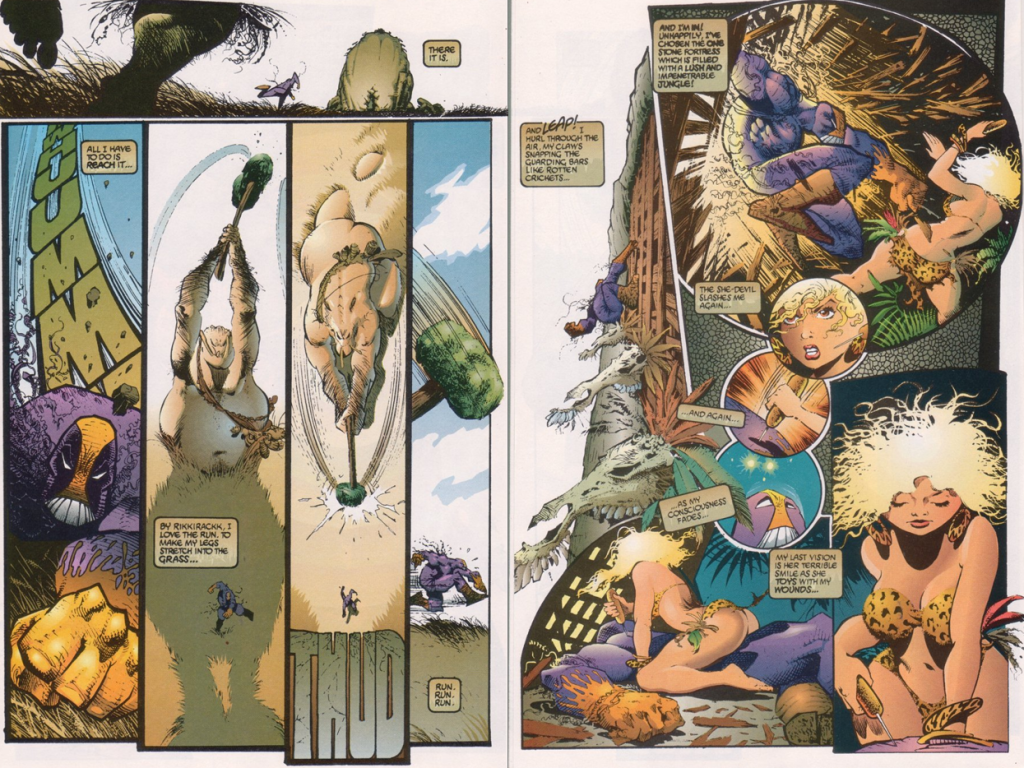 And so, Kieth artfully juxtaposes postmodern sensibilities with the pure freedom of stretching your legs, running past the wonders and sights of a magical pulp fiction prehistoria. For Maxx, this fantasy world is an escape from the pretentious postmodern world, a place free of mental illness, homelessness, misery, self-serving social justice crusades, and radical feminism. A place where a man can still be a traditional hero, protect his Jungle Queen, and be appreciated for it.