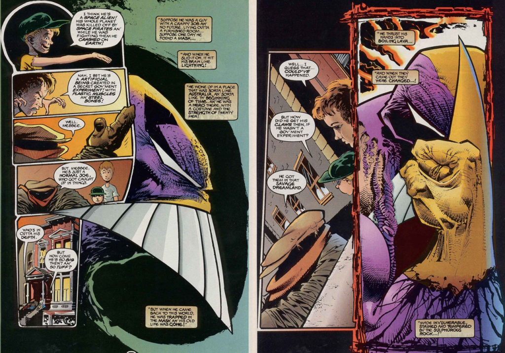 In the pages of The Maxx, Kieth (and William Messner-Loebs) created a fantasy version of Australia, much like how many of the NewPulp offerings I’ve read have utilized and reimagined real world locales. In this case, it has a clear narrative purpose.