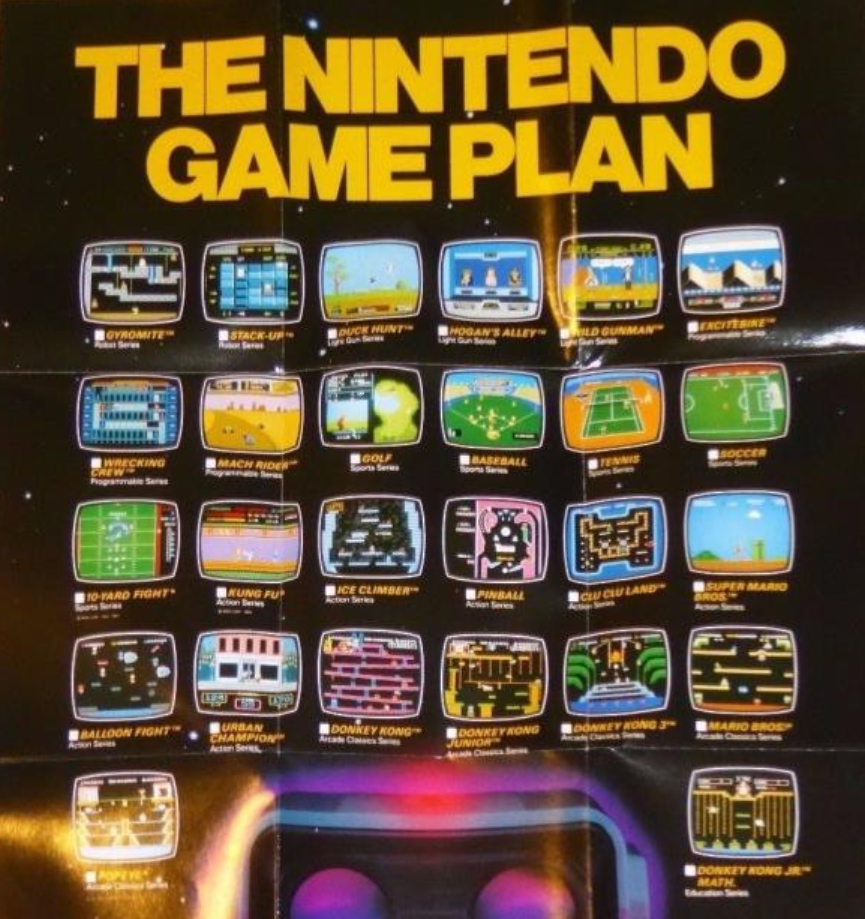 I used to spend hours pouring over this thing, trying to imagine what each game was like. Aside from the games I already had, I was quite familiar with Popeye (as I’d played it on our Atari 5200). But Wrecking Crew, Donkey Kong 3, and Clu Clu Land especially perplexed me. I couldn’t imagine what kind of gameplay would fit those screen layouts.