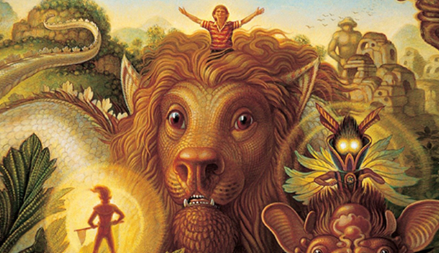 Atreyu awakens somewhere peaceful beneath a starry sky, in Falkor’s gentle embrace. The luck dragon’s floppy-eared dog-like appearance is iconic and instantly lovable.
