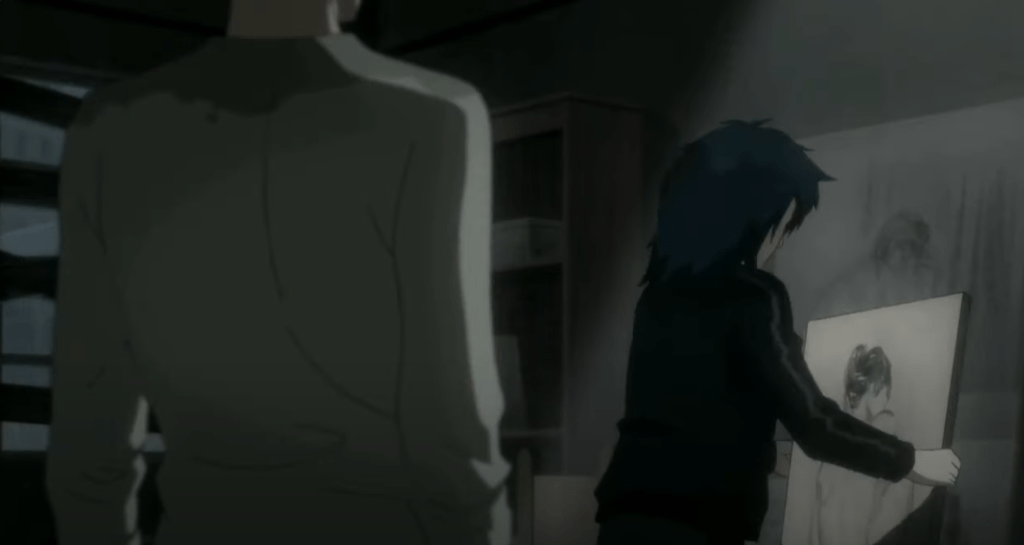 Then his demons appear in the hallway, saying he doesn’t really want to paint her so much as get her into his apartment.