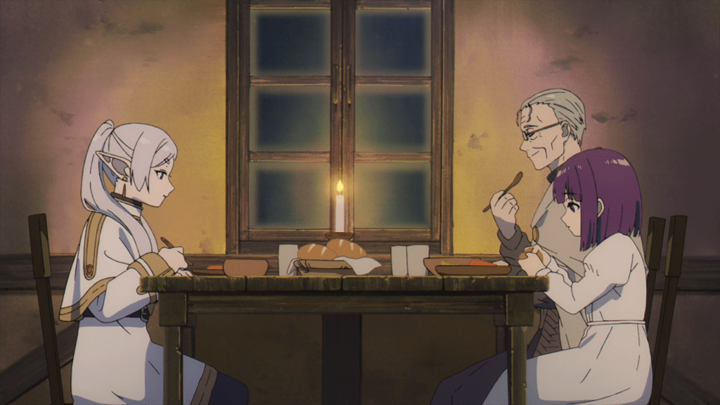 None-the-wiser to Heiter’s grand plan, Frieren deciphers the grimoire while tutoring Fern as promised. Over the next four years, the three spend time together, like a family.