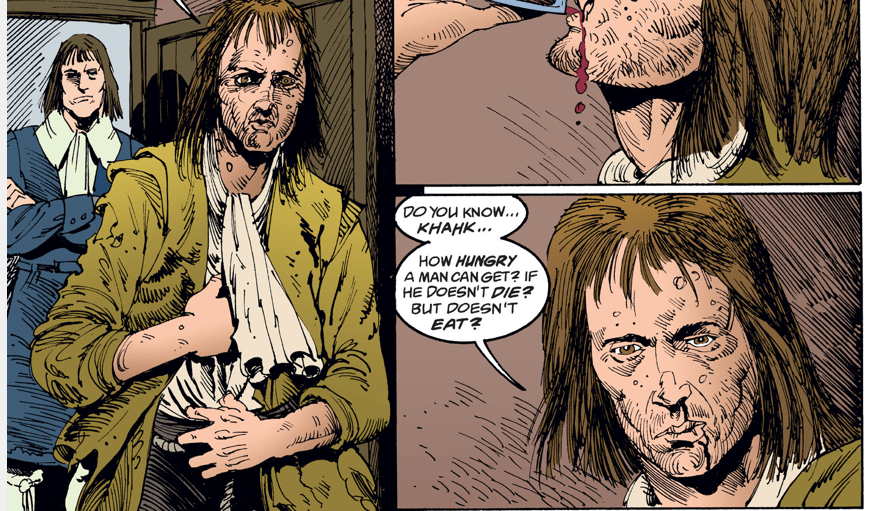 Another hundred years. Hob is in such squalor that the bouncer won’t even let him into the tavern – until Dream intervenes.